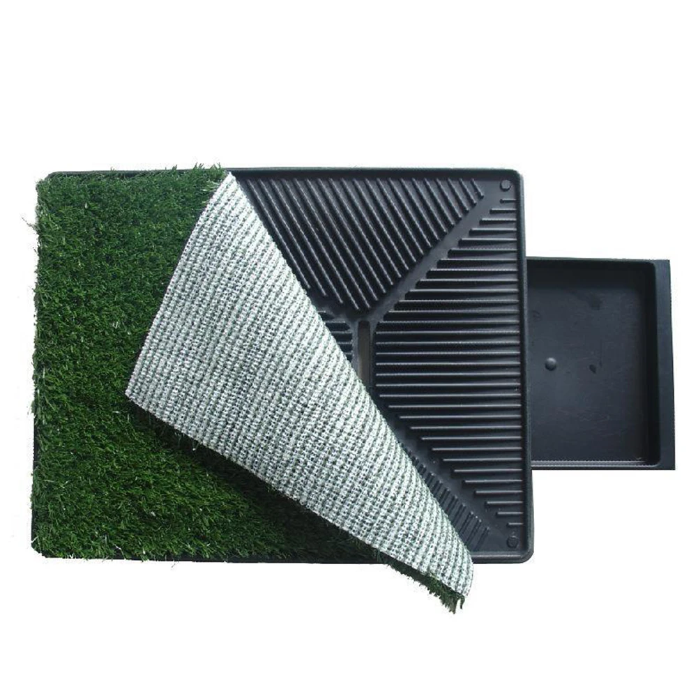 - Three-layer Dog Grass Pad with Large Tray helps you direct urine into a collection box for easy disposal, thanks to a sloped bottom and a pee baffle.