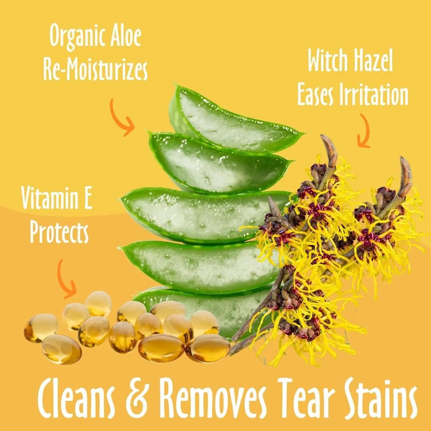 - Gently lift tear discharge, debris, and cling-ons around the eyes with a non-irritating, witch hazel- and aloe-infused formula that soothes sensitive skin.